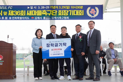 ÀåÇÐ±Ý ±âŹÀº ¡®±èÁ¦»õ¸¶À»Ã౸´Ü â´Ü 50Áֳ⠱â³ä½Ä ¹× Á¦36ȸ ±èÁ¦»õ¸¶À»Ã౸´Ü ȸÀå±â Ã౸´ëȸ¡¯¿Í ¿¬°èÇØ ÁøÇàµÆ´Ù. À̹ø Çà»ç´Â ´Ü¼øÇÑ ±â³ä½ÄÀ» ³Ñ¾î Áö¿ª»çȸ¿¡ ȯ¿øÇÏ´Â ¶æ±íÀº ÀÚ¸®·Î ¸¶·ÃµÅ, Ã౸´ÜÀÇ »çȸÀû Ã¥ÀÓ°ú ³ª´®ÀÇ °¡Ä¡¸¦ ½ÇõÇÏ´Â °è±â°¡ µÆ´Ù.