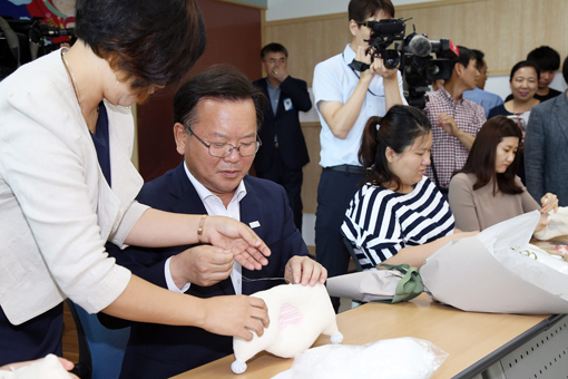±èºÎ°â ÇàÁ¤ÀÚÄ¡ºÎ Àå°üÀÌ 12ÀÏ ¿ÀÈÄ ¿ÏÁÖ±º °¡Á·¹®È±³À°¿øÀ» ¹æ¹®, ÀÓ»êºÎ¿Í ÇÔ²² ÇÏ´Â ÇöÀå °£´ãȸ¿¡¼ Ãâ»ê¿ëǰ ¸¸µé±â üÇèÀ» Çϰí ÀÖ´Ù.