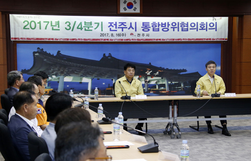 ÀüÁֽô 16ÀÏ ½Ãû 4Ãþ ȸÀǽǿ¡¼ ±è½Â¼ö ½ÃÀå°ú ±ººÎ´ë, °æÂû¼ µî ÅëÇÕ¹æÀ§ ÁÖ¿ä±â°üÀå°ú ´ÜüÀå µî 20¿©¸íÀÌ Âü¼®ÇÑ °¡¿îµ¥, '2017³â À»Áö¿¬½À ´ëºñ 3/4ºÐ±â ÀüÁֽà ÅëÇÕ¹æÀ§ÇùÀÇȸÀÇ'¸¦ °³ÃÖÇß´Ù.