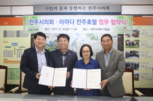 ÀüÁÖ½ÃÀÇȸ¿Í ¶ó¸¶´ÙÀüÁÖ È£ÅÚÀº 18ÀÏ ½ÃÀÇȸ¿¡¼ 'ÀüÁֽà °ü±¤»ê¾÷ Ȱ¼ºÈ ¹× ü·ùÇü °ü±¤°´ À¯Ä¡'¸¦ À§ÇÑ ¾÷¹« Çù¾àÀ» ü°áÇϰí ÀÖ´Ù.