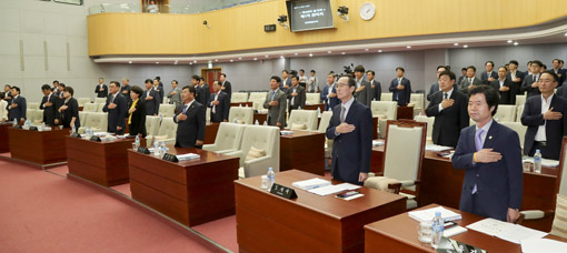 Á¦346ȸ ÀüºÏµµÀÇȸ ÀÓ½Ãȸ°¡ 6ÀÏ µµÀÇȸ º»È¸ÀÇÀå¿¡¼ ¿¸° °¡¿îµ¥ ¼ÛÇÏÁø µµÁö»ç¿Í ±è½Âȯ ±³À°°¨À» ºñ·ÔÇÑ µµÀÇ¿øµéÀÌ ±¹¹ÎÀǷʸ¦ Çϰí ÀÖ´Ù.