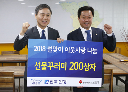 ÀüºÏÀºÇàÀº ¼³ ¸íÀýÀ» ¾ÕµÎ°í º¹Áö»ç°¢Áö´ë¿¡ ³õÀÎ ¾î·Á¿î ÀÌ¿ôÀ» µ½±â À§ÇØ 500¸¸¿ø »ó´çÀÇ ÀÌ¿ô»ç¶û ¼±¹°²Ù·¯¹Ì¸¦ ÀüÁֽÿ¡ Áö³ 2ÀÏ Àü´ÞÇß´Ù.