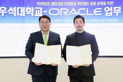 ¿ì¼®´ëÇб³(ÃÑÀå ¹Ú³ëÁØ)°¡ ±Û·Î¹ú IT ±â¾÷ÀÎ Çѱ¹¿À¶óŬ À¯ÇÑȸ»ç¿Í ¼ÕÀâ°í AI¡¤SW ±â¹Ý ÷´Ü»ê¾÷ ÀÎÀç ¾ç¼º¿¡ º»°Ý ³ª¼±´Ù.
