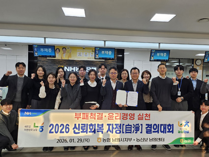 ³óÇù ³²¿ø½ÃÁöºÎ(ÁöºÎÀå ±èÁ¾ÁÖ)´Â 29ÀÏ, ³ó½Åº¸ ³²¿ø¼¾ÅÍ(¼¾ÅÍÀå À̼ºÁø)¿Í ¡®2026 ½Å·Úȸº¹ ÀÚÁ¤ °áÀÇ´ëȸ¡¯¸¦ °³ÃÖÇϰí À±¸®°æ¿µ ½Çõ°ú ³»ºÎÅëÁ¦ °È¸¦ ÅëÇÑ ½Å·Úȸº¹À» ´ÙÁüÇß´Ù.