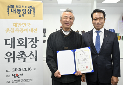 ³²¿ø½Ã°¡ ÁÖÃÖÇÏ°í ³²¿ø¸ñ°ø¿¹Çùȸ°¡ ÁÖ°üÇØ ¿À´Â 4¿ù 3ÀϺÎÅÍ 5ÀϱîÁö °³ÃֵǴ ´ëÇѹα¹ ¿ÌÄ¥ ¸ñ°ø¿¹´ëÀü(ÀÌÇÏ ´ëÀü)ÀÇ ¿î¿µ »çÇ×À» ÃѰýÇÒ ´ëȸÀå¿¡ ±¹°¡¹«ÇüÀ¯»ê ¹ÚÁ¾±º ÀåµµÀåÀÌ ÀçÀ§Ã˵Ǿú´Ù.