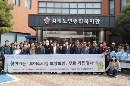 NH³óÇùÀºÇà ÀüºÏº»ºÎ´Â 27ÀÏ ±èÁ¦³ëÀÎÁ¾ÇÕº¹Áö°üÀ» ã¾Æ °í·ÉÃþÀ» ´ë»óÀ¸·Î ±ÝÀ¶»ç±â ¿¹¹æ ±³À°°ú ÇÔ²² ¡®º¸À̽ºÇÇ½Ì º¸»óº¸Ç衯 ¾È³»¸¦ ÁøÇàÇß´Ù°í ¹àÇû´Ù. À̳¯ Çà»ç¿¡´Â Àå±æÈ¯ ÀüºÏº»ºÎÀåÀ» ºñ·ÔÇØ ±èÁ¦½ÃÁöºÎ, NH³óÇù¼ÕÇØº¸Çè °ü°èÀÚµéÀÌ ÇÔ²² Âü¿©ÇØ ±³À°À» ½Ç½ÃÇϰí, Áö¿ª ¾î¸£½ÅµéÀ» À§ÇÑ »ç¶ûÀÇ ½Ò 300kgµµ Àü´ÞÇß´Ù.