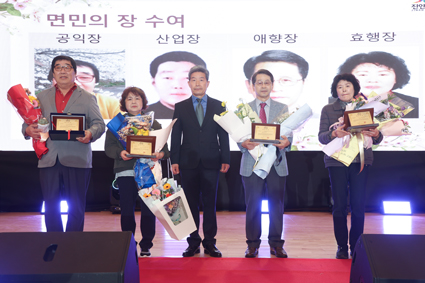 Çà»ç´Â ³ë±âȯ ¿ë´ã¸éÀåÀÇ ±â³ä»ç¸¦ ½ÃÀÛÀ¸·Î ¸é¹ÎÀÇ Àå ½Ã»ó½Ä, °ø·ÎÆÐ ¹× °¨»çÆÐ ¼ö¿©, ÀåÇÐ±Ý Àü´Þ½Ä µîÀÌ ÁøÇàµÆ´Ù. ¸é¹ÎÀÇ ÀåÀº °øÀÍÀå ¹®»óö(75), »ê¾÷Àå ±è±â¿ø(63), ¾ÖÇâÀå ½ÅÅ¿ì(70), È¿ÇàÀå °¨³²¼÷(65) ¾¾°¡ °¢°¢ ¼ö»óÀÇ ¿µ¿¹¸¦ ¾È¾Ò´Ù. ¶ÇÇÑ °ø·ÎÆÐ´Â ÃÊ´ë ¿ë´ã¸é üÀ°È¸Àå ±èö¿µ(56) ¾¾¿Í Àü ¿ë´ã¸é ºÎ¸éÀå Á¤»ó±¹(49) ¾¾¿¡°Ô, °¨»çÆÐ´Â À±¼øÁ¾(60) »ê¾÷ÆÀÀå¿¡°Ô ¼ö¿©µÆ´Ù.