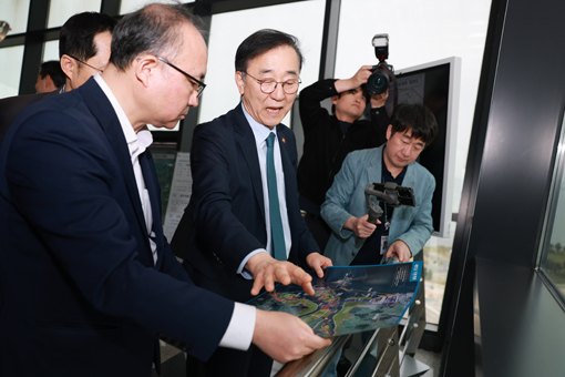 ¶Ç »õ¸¸±Ý33¼¾ÅÍ Àü¸Á´ë¸¦ ¹æ¹®ÇØ ¼öº¯µµ½Ã Á¶¼º ÇöȲÀ» Á¡°ËÇϰí, ÃÖ±Ù °ø°íµÈ ¡®»õ¸¸±Ý ½º¸¶Æ®µµ½Ã°èȹ¡¯À» Áß½ÉÀ¸·Î ÇÑ AI ±â¹Ý µµ½Ã Á¶¼º ¹æÇâµµ »ìÆñ´Ù.