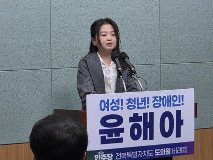 À± ¿¹ºñÈ帴 ÀÚ½ÅÀ» ¡°Ã»³âÀÌÀÚ ¿©¼º, ±×¸®°í Àå¾ÖÀÎ ´ç»çÀÚ¡±¶ó°í ¼Ò°³Çϸç, »çȸÀû ¾àÀڷμ °ÞÀº °æÇèÀ» ¹ÙÅÁÀ¸·Î µµ¹ÎÀÇ »îÀ» ½ÇÁúÀûÀ¸·Î °³¼±ÇÏ´Â Á¤Ä¡¸¦ ÆîÄ¡°Ú´Ù°í °Á¶Çß´Ù.