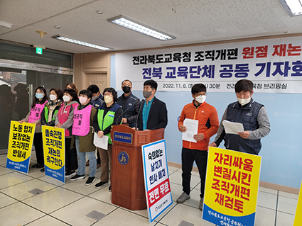 ¸ÕÀú, À̵éÀº ÀüºÏ±³À°Ã»ÀÇ Á¶Á÷°³Æí¾È ÃßÁøÀÌ ºñ¹ÎÁÖÀûÀ¸·Î ÀÌ·ïÁ³À½¿¡µµ ºÒ±¸ÇÏ°í ¡®ÀÚ¸®½Î¿ò¡¯À̳ª, ¡®¼¼·Â´ÙÅù¡¯À¸·Î ºñÄ¡´Â °Í¿¡ À¯°¨À» Ç¥Çß´Ù. ±×·¯¸é¼ ÀÌ·± ºÒÇÊ¿äÇÑ °¥µîÀº »çÀü¿¡ ¾Æ¹«·± ¼³¸íÀ̳ª, Àǰ߼ö·Å °úÁ¤ ¾øÀÌ Á¶Á÷°³Æí¾ÈÀ» ÃßÁøÇÑ ÀüºÏ±³À°Ã»ÀÇ ÇàÅ¿¡¼ ºñ·ÔµÈ °ÍÀ̶ó°í ºñÆÇÇß´Ù.