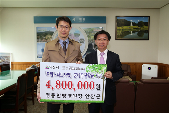 ¾ÈÂù±Ù ¿µµîÇѹ溴¿øÀåÀÌ ÀÍ»êµå¸²½ºÅ¸Æ® ¾Æµ¿À» À§ÇØ ²Þ³ª¹« ÀåÇÐ±Ý 480¸¸¿øÀ» ±âŹÇß´Ù.