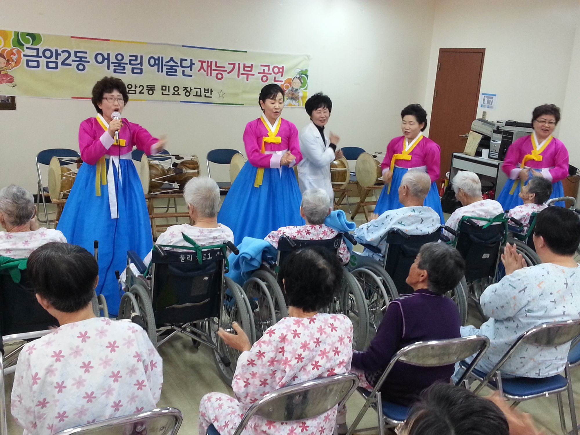 ±Ý¾Ï2µ¿¾î¿ï¸²¿¹¼ú´Ü ¹Î¿äÀ屸¹Ý(°»ç ¹Ý¿µÀÚ)Àº Áö³ 2010³âºÎÅÍ ¸Å´Þ ¿ä¾çº´¿øÀ» ¹æ¹®ÇØ ÀÔ¿øÁßÀÎ ¾î¸£½Åµé¿¡°Ô ¸»¹þ µÇ¾îµå¸®±â, ³ë·¡, ¹Î¿äÀ屸 °ø¿¬ µî 6³â° Àç´É±âºÎ¸¦ Çϰí ÀÖ´Ù.