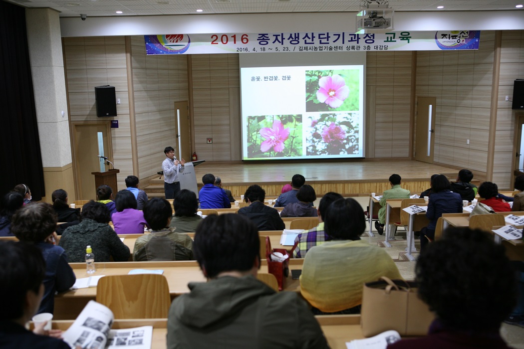 ±èÁ¦½Ã³ó¾÷±â¼ú¼¾ÅÍ(¼ÒÀå ±èÇѼ®)´Â ¹Î°£À°Á¾¿¬±¸´ÜÁö¿Í Á¾ÀÚ»ý¸í¿¬±¸´ÜÁö¿¡ ÇÊ¿ä·Î ÇÏ´Â Àü¹®Àη ¹× ±âÃÊÀη ¼ö±Þ°ú ±Þº¯ÇÏ´Â ¼¼°è³ó¾÷°ú ½ÃÀå°æÁ¦¿¡ ´ëÀÀÇÒ ¼ö ÀÖ´Â °æ¿µ¸¶ÀÎµå °íÃë·Î ³ó¾÷ÀÇ Çõ½Å°ú º¯È¸¦ ¼±µµÇÒ Á¤¿¹Àη ¾ç¼ºÀ» À§ÇØ °³¼³µÈ ¡º2016³âµµ Á¾ÀÚ»ý»ê ´Ü±â°úÁ¤ ±³À°¡»ÀÌ Áö³ 18ÀÏ ¿ÀÈÄ 1½Ã¹Ý ³ó¾÷±â¼ú¼¾ÅÍ »ó·Ï°ü¿¡¼ ±³À°»ý 80¿©¸íÀÌ Âü¼®ÇÑ °¡¿îµ¥ °³°½ÄÀ» ½ÃÀÛÀ¸·Î º»°ÝÀûÀÎ ±³À°ÀÌ ½ÃÀ۵Ǿú´Ù.