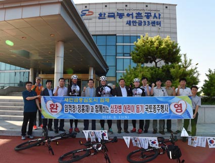 Á¤¾¾ÀÇ ±¹ÅäÁ¾ÁÖ Çà»ç´Â Áö³ 10ÀÏ ÇØ³² ¶¥³¡¸¶À»¿¡¼ ½ÃÀÛÇÏ¿© ¼¿ï ±¸¾Ï ±Ù¸°°ø¿ø±îÁö 9¹Ú 10ÀÏ ¿©Á¤À¸·Î 868km¸¦ ÀÚÀü°Å·Î ´Þ¸®¸é¼ ¼Ò¾Æ¾Ï°ú ½ÉÀ庴À» ¾Î°í ÀÖ´Â ¾î¸°ÀÌ¿Í ºÒ¿ìÀÌ¿ôÀ» µ½±â À§ÇØ ±âȹµÈ ÀÚ¼±Çà»çÀÌ´Ù.