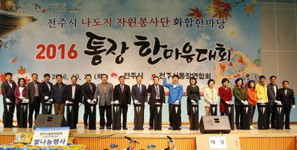 25ÀÏ ÀüÁÖ È»êüÀ°°ü¿¡¼´Â ±è½Â¼ö ÀüÁÖ½ÃÀå°ú ±è¸íÁö ÀüÁÖ½ÃÀÇȸ ÀÇÀå, ½Ã¡¤µµÀÇ¿ø µî ÁÖ¿ä³»ºó°ú °¢ µ¿ ÅëÀ忬ÇÕȸÀå ¹× ÀüÁֽà ÅëÀå µî 1300¿©¸íÀÌ Âü¼®ÇÑ °¡¿îµ¥ '2016 ÀüÁֽà ÅëÀå(³ªµµÁö ÀÚ¿øºÀ»ç´Ü) ÇѸ¶À½´ëȸ¡¯°¡ ¿·È´Ù./±è¿µÀç ±âÀÚ