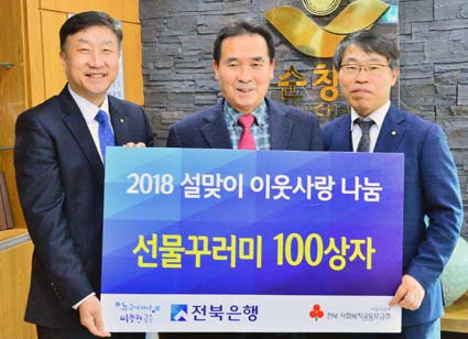 ÀüºÏÀºÇà ¼øÃ¢ÁöÁ¡ ±èºÀ·® ÁöÁ¡ÀåÀº ÀÌ¿µÅ ½Ã¿ÜÁö¿ª±ÝÀ¶¼¾ÅÍÀå°ú ÇÔ²² ±è,´ç¸é,½Ä¿ëÀ¯,¹Ð°¡·ç µî »ýÇÊǰÀ¸·Î ä¿öÁø ¼±¹°²Ù·¯¹Ì 100»óÀÚ¸¦ Ȳ¼÷ÁÖ ±º¼ö¿¡°Ô ±âŹÇß´Ù.