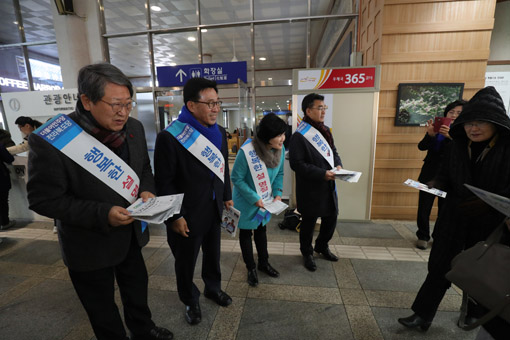 ±èÃáÁø ´õºÒ¾î¹ÎÁÖ´ç ÀüºÏµµ´ç À§¿øÀå°ú ´çÁ÷ÀÚ, ½ÃµµÀÇ¿øµéÀÌ 12ÀÏ ¿ÀÀü ÀüÁÖ¿ª¿¡¼ ±Í¼º°´µéÀ» ¸ÂÀÌÇϰí ÀÖ´Ù. /±èÁø¼º ±âÀÚ