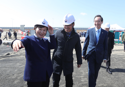 »õ¸¸±ÝƯº°¹ýÀÌ ±¹È¸ º»È¸ÀÇ¿¡¼ Åë°úµÅ »õ¸¸±Ý°³¹ß°ø»ç ¼³¸³ ¹× »õ¸¸±Ý°³¹ßû ÀüºÏÀÌÀü µîÀÌ ±ÞÁøÀüµÇ´Â °¡¿îµ¥ 16ÀÏ ±èÇö¹Ì ±¹ÅäºÎÀå°üÀÌ »õ¸¸±ÝÀ» ¹æ¹®Çß´Ù. »çÁøÀº ±èÇö¹Ì Àå°üÀÌ ¾ÈÀü¸ð¸¦ ¾²¸ç Áñ°Å¿öÇϰí ÀÖ´Â ¸ð½À.