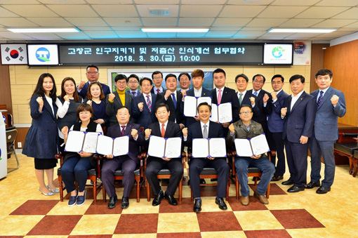 30ÀÏ °íⱺÀÌ ÀúÃâ»ê ±Øº¹À» À§ÇØ 'Àα¸Áö۱â, ÀúÃâ»ê Àνݳ¼±' ¾÷¹«Çù¾àÀ» »õ¸¶À»¿îµ¿º»ºÎ °íⱺÁöȸ, °íⱺÀÇ¿ë¼Ò¹æ´ë¿¬ÇÕȸ, °íⱺ¾ÖÇâû³âȸ, °íâû³âȸÀǼÒ, °íⱺ4H¿¬ÇÕ, °íⱺ±âµ¶±³¿¬ÇÕȸ, °íⱺ¹Ð¾Ë¿©¼ºÈ¸ µî°ú ü°áÇÑ ÈÄ ¹Ú¿ìÁ¤ ±º¼ö¿Í °¢ ´Üü ´ëÇ¥ µîÀÌ ±â³äÃÔ¿µÀ» Çϰí ÀÖ´Ù.