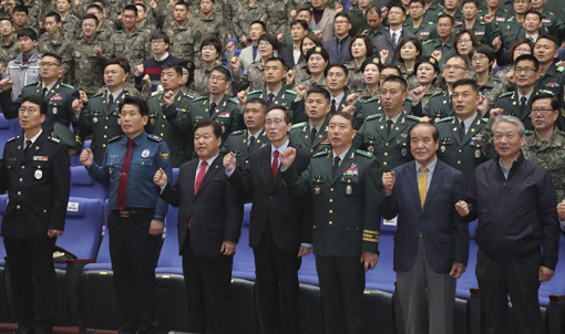6ÀÏ µµÃ» °ø¿¬Àå¿¡¼ ¿¸° Á¦50Áֳ⠿¹ºñ±ºÀÇ ³¯ ±â³äÇà»ç¿¡ ¼ÛÇÏÁøµµÁö»ç¿Í ±è°æ¼ö 35»ç´ÜÀå, °ÀÎö ÀüºÏ°æÂûûÀåÀ» ºñ·ÔÇÑ Âü¼®ÀÚµéÀÌ ¿¹ºñ±º°¡¸¦ Á¦Ã¢Çϰí ÀÖ´Ù.