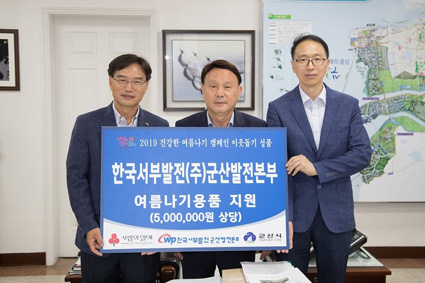 Çѱ¹¼ºÎ¹ßÀü(ÁÖ)±º»ê¹ßÀüº»ºÎ(º»ºÎÀå È²ÇØ¼®)°¡ ¹«´õÀ§¿¡ Ãë¾àÇÑ Àú¼Òµæ °¡Á¤ÀÌ ½Ã¿øÇÑ ¿©¸§À» º¸³¾ ¼ö ÀÖµµ·Ï ¹°Ç°À» Áö¿øÇØ Áö¿ª»çȸ¿¡ ±Í°¨ÀÌ µÇ°í ÀÖ´Ù.