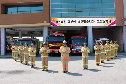 ¹é½Â±â ¼ÀåÀ» ºñ·ÔÇÑ ¼Ò¹æ´ë¿ø 14¸íÀº ÀüºÏ¼Ò¹æº»ºÎÀåÀÇ Áö¸ñÀ» ¹Þ¾Æ Âü¿©Çß°í, ¡®Victory¡¯ÀÇ ¡®V¡¯¸¦ Çü»óÈÇÏ¿© Äڷγª19 »çÅõ¿¡ ½Â¸®¸¦ ±â¿øÇß´Ù.