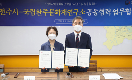 ±è½Â¼ö ÀüÁÖ½ÃÀå°ú À¯ÀçÀº ±¹¸³¿ÏÁÖ¹®ÈÀ翬±¸¼ÒÀåÀº 6ÀÏ ÀüÁÖ½ÃÀå½Ç¿¡¼ ÀüÁÖÁö¿ª ¹®ÈÀ¯»ê ÇмúÁ¶»ç¿¬±¸ ¹× Ȱ¿ëÀ» À§ÇÑ ¾÷¹«Çù¾àÀ» ü°áÇß´Ù.