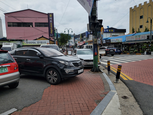 ¹«ÁÖ±º °ü°èÀÚ L¸ð¾¾´Â¡°P¸¶Æ®¿¡¼ Àεµ¿¡ Â÷¸¦ ¸ø´ë°Ô À¯µµ Çϰí, ÁÖÂ÷¼±À» ¾ø¾Ö ÁֹεéÀÇ ÅëÇà ºÒÆí ÇØ¼Ò¸¦ À§ÇØ ´Ù°¢ÀûÀÎ ³ë·ÂÇϰڴ١±¸é¼ ¡°±×·¯³ª ¸¶Æ®¾Õ µµ·Î Ãø·®¼±À» »ìÆìº¸´Ï ÀεµÀÇ ¹ÝÀý ÀÌ»óÀÌ ¸¶Æ® ¶¥À¸·Î µÅ ÀÖ¾î ÇöÀç´Â ÁÖÂ÷ÀåÀ¸·Î »ç¿ëÇÏ´Â Àεµ¸¦ °ü¸®Çϴµ¥ ¾î·Á¿òÀÌ ¸¹´Ù¡±°í ¸»Çß´Ù. /¹«ÁÖ=Àü¹®¼± ±âÀÚ