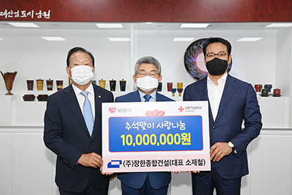³²¿ø½Ã´Â 7ÀÏ (ÁÖ)ÀåÇÑÁ¾ÇհǼ³ ¼ÒÀçö ´ëÇ¥À̻簡 Ãß¼®À» ¸ÂÀÌÇØ °íÇâÀÎ ³²¿ø½Ã °ü³» Ãë¾à°èÃþ¿¡°Ô ÀüÇØ´Þ¶ó¸ç ³²¿ø»ç¶û»óǰ±Ç 1,000¸¸¿øÀ» Àü´ÞÇß´Ù°í ÀüÇß´Ù.
