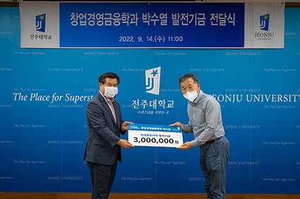 ÀüÁÖ´ëÇб³ ¹Ì·¡À¶ÇÕ´ëÇÐ ¹Ú¼ö¿ Çлý(â¾÷°æ¿µ±ÝÀ¶Çаú)ÀÌ ÀåÇÐ±Ý 300¸¸¿øÀ» ±âºÎÇß´Ù°í 14ÀÏ ¹àÇû´Ù.