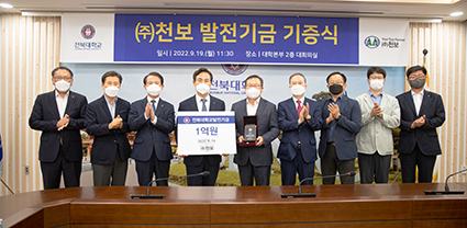 ¢ßõº¸ ÀÌ»óÀ² ´ëÇ¥À̻簡 ÀüºÏ´ëÇб³ÀÇ °æÀï·Â Çâ»óÀ» ±â¿øÇϸç 1¾ï ¿øÀÇ ¹ßÀü±â±ÝÀ» ±âºÎÇß´Ù°í ÀüÇß´Ù.