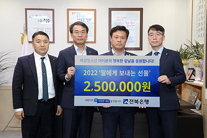 JB±ÝÀ¶±×·ì ÀüºÏÀºÇàÀÌ 9ÀÏ Á¤À¾½ÃûÀ» ¹æ¹®ÇØ Á¤À¾Áö¿ª ¿©¼º û¼Ò³âÀ» À§ÇÑ º¸°Ç À§»ý¿ëǰÀ» Àü´ÞÇß´Ù.