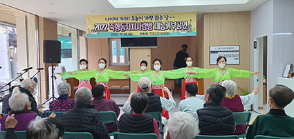 À̹ø °ø¿¬¿¡´Â °µµ±ÙÀü±¹ÆÇ¼Ò¸®´ëȸ¿¡¼ ´ë»óÀ» ¼ö»óÇÑ ¹Î¿äÆÀÀ» ºñ·ÔÇÑ 4°³ÆÀ 40¿©¸íÀÌ Âü¿©ÇØ, º´¸¶¿¡ ÁöÄ£ ȯ¿ìµéÀ» À§ÇÑ °ø¿¬À» 2°³¿ùÀüºÎÅÍ ÁغñÇßÀ¸¸ç, ÀÔ¿øÇÑ ¾î¸£½ÅµéÀº ¸ð󷳸¸¿¡ Èï°ã°í Áñ°Å¿î ½Ã°£ÀÌ µÇ¾ú´Ù¸ç Èï¿¡ °Ü¿ö ¾î±ú¸¦ µé½âÀ̾ú°í, ³ë·¡°½À ½Ã°£¿¡´Â ÈûÂ÷°Ô ³ë·¡¸¦ µû¶ó ºÒ·¶´Ù.