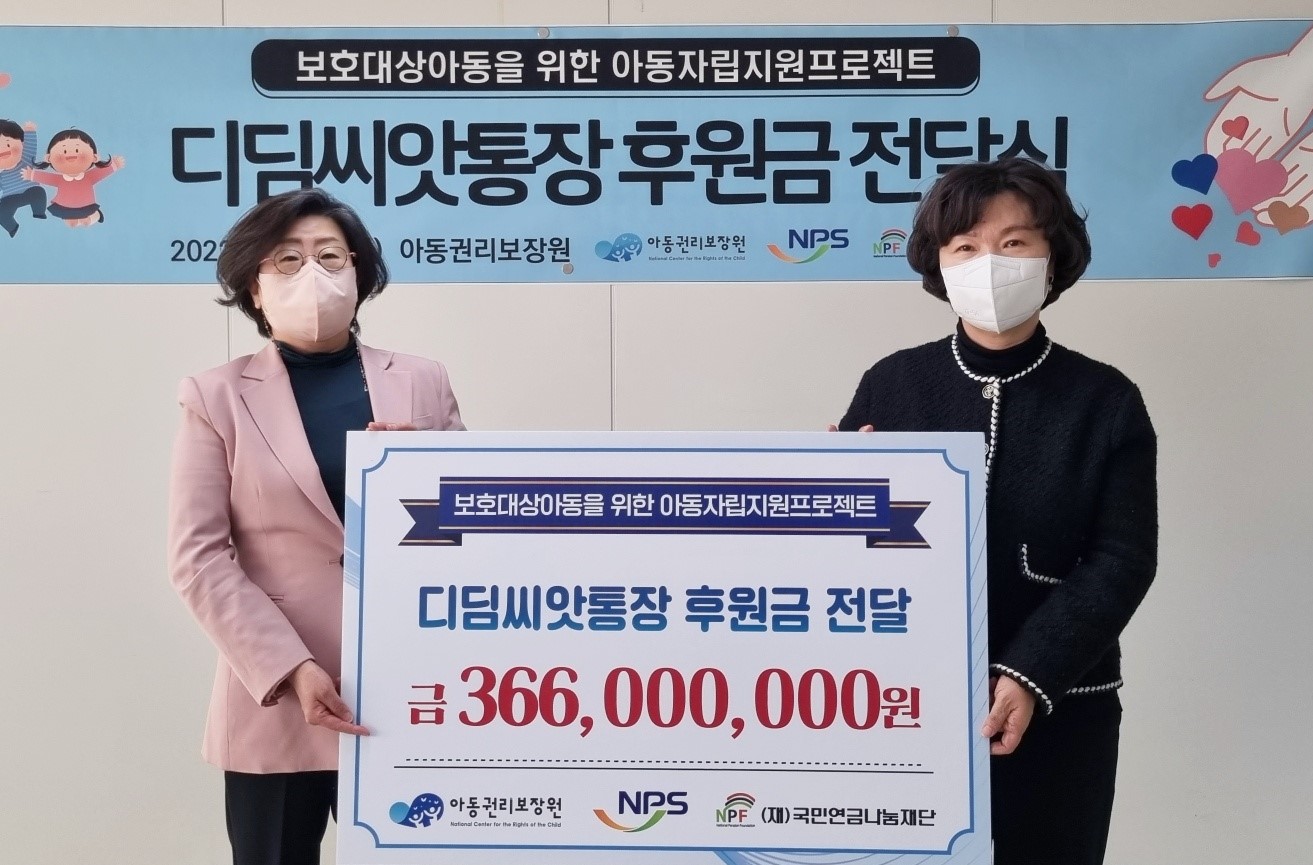 ±¹¹Î¿¬±Ý°ø´Ü(ÀÌ»çÀå ±èÅÂÇö)Àº Ãë¾à°èÃþ ¾Æµ¿ÀÇ ÀÚ¸³À» À§ÇÑ ¡®µðµõ¾¾¾ÑÅëÀ塯 ÈÄ¿ø±ÝÀ» ¾Æµ¿±Ç¸®º¸Àå¿ø(¿øÀå À±Çý¹Ì)¿¡ 16ÀÏ Àü´ÞÇß´Ù.