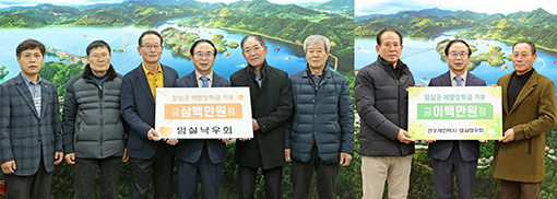Àӽdz«¿ìȸ(ȸÀå ÀÌ»ó¿Á)¿Í ÀüÁÖ°³ÀÎÅýà ÀÓ½ÇÇâ¿ìȸ(ȸÀå Àüö¼º)°¡ 20ÀÏ ÀӽDZºÀ» ¹æ¹®ÇØ ÀӽDZº ¾ÖÇâÀåÇÐȸ ÀÌ»çÀåÀÎ ½É ¹Î ±º¼ö¿¡°Ô Áö¿ª ÀÎÀç À°¼ºÀ» À§ÇÑ ÀåÇбÝÀ» Àü´ÞÇß´Ù.
