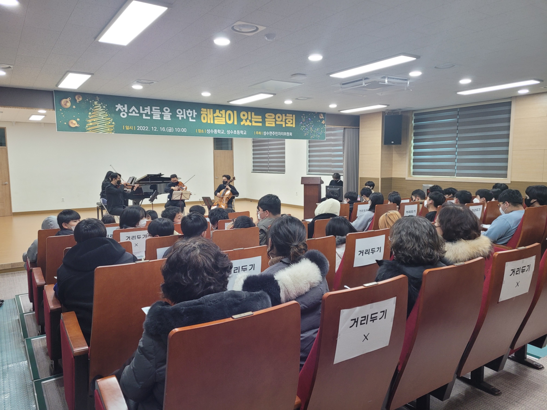 ¼º¼ö¸é ÁÖ¹ÎÀÚÄ¡À§¿øÈ¸(À§¿øÀå ±èÇмº)°¡¡®Ã»¼Ò³âµéÀ» À§ÇÑ ÇØ¼³ÀÌ ÀÖ´Â À½¾Çȸ¡¯¸¦ 80¿©¸íÀÇ ÇлýµéÀÌ Âü°¡ÇÑ °¡¿îµ¥ ¼º¼öÁßÇб³¿¡¼ °³ÃÖÇß´Ù.