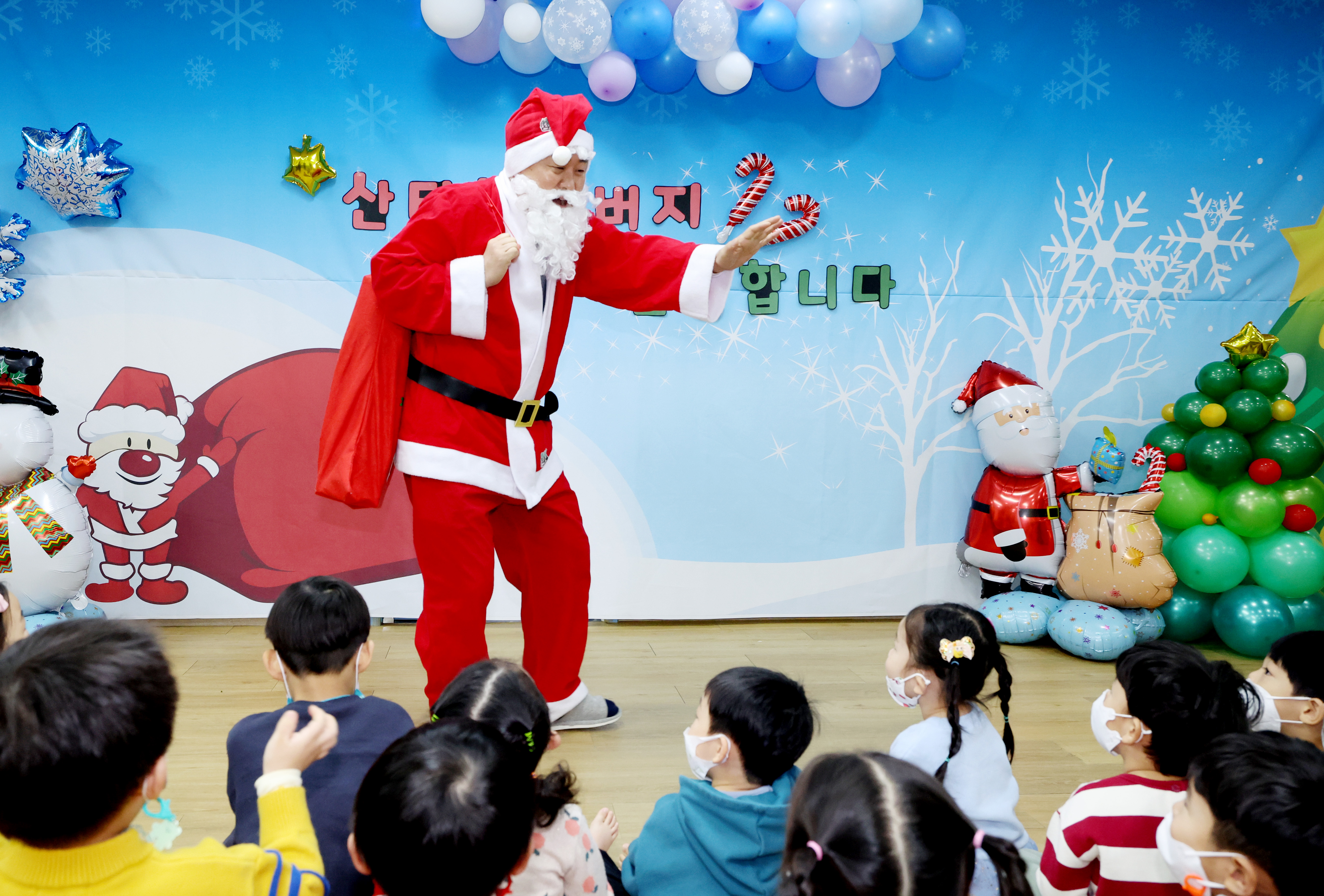 À̳¯ ¾î¸°ÀÌÁý À¯Èñ½Ç¿¡ ¸ð¿© Áñ°Ì°Ô ij·Ñ¼ÛÀ» ºÎ¸£´ø ¾ÆÀ̵éÀº ±è Áö»ç°¡ ¡®¸Þ¸® Å©¸®½º¸¶½º¡¯¶ó°í ¿ÜÄ¡¸ç ÀλçÇÏÀÚ, ±ô¦ ³î¶ó¸ç ´Þ·Á ³ª¿Í ¸Ö¸®¼ ã¾Æ¿Â »êŸÇҾƹöÁö¸¦ ¹Ý°ÜÁÖ¾ú´Ù.