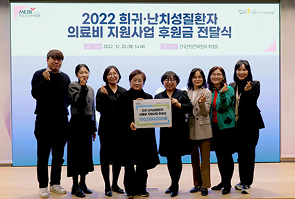 Çѱ¹°Ç°°ü¸®Çùȸ(ȸÀå ±èÀοø)´Â º»È¸ Ãß´ãȦ¿¡¼ Èñ±Í¡¤³Ä¡¼ºÁúȯÀ¸·Î °íÅë¹Þ´Â ȯ¿ì¿Í ±× °¡Á·À» À§ÇÑ ÀÇ·áºñ 1¾ï ¿øÀ» Áö³ 21ÀÏ Çѱ¹Èñ±Í¡¤³Ä¡¼ºÁúȯ¿¬ÇÕȸ¿¡ Àü´ÞÇß´Ù°í 23ÀÏ ¹àÇû´Ù.