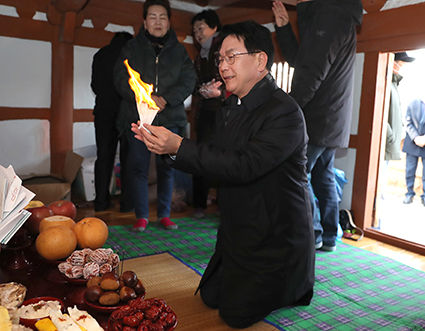 ¿ÀÀü 11½Ã Àå¼ö¸¶À» ³ëÀδ翡¼ À½½Ä À常°ú Á¦·Ê Áغñ¸¦ ½ÃÀÛÇϰí, 12½Ã¿¡ ¿µ½Å´ç¿¡ °¡¼ Á¦¹°À» Â÷¸®°í Á¦¸¦ ¿Ã·È´Ù.