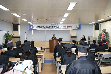 Àå¼ö±º °è¾àÇаúÀÎ ÀüºÏ´ë ³ó¾÷½Ã½ºÅÛÇаúÀÇ 1±â ÇÐÀ§¼ö¿©½ÄÀÌ 21ÀÏ ³ó¾÷±â¼ú¼¾ÅÍ ´ë°Àǽǿ¡¼ °³ÃֵƴÙ.