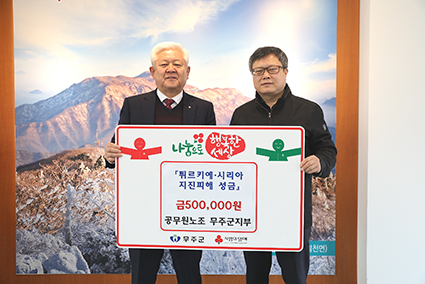 Àü±¹°ø¹«¿ø³ëµ¿Á¶ÇÕ ¹«ÁÖ±ºÁöºÎ°¡ ÁöÁøÀ¸·Î ¾î·Á¿òÀ» °Þ°í Àִ Ƣ¸£Å°¿¹ ¡¤ ½Ã¸®¾Æ ±¹¹ÎµéÀ» À§ÇÑ ¼º±ÝÀ» ±âÅ¹ÇØ ±Í°¨ÀÌ µÇ°í ÀÖ´Ù.