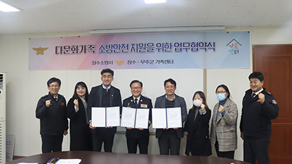 À̹ø ¾÷¹«Çù¾à½ÄÀº Àå¼ö¼Ò¹æ¼¿Í ¹«ÁÖ±º °¡Á·¼¾ÅÍÀÇ »óÈ£ ±³·ù¸¦ ÅëÇØ È¿À²Àû Çù·Âü°è¸¦ ±¸ÃàÇØ ¾ð¾î¡¤¹®È µîÀÇ Â÷ÀÌ·Î ¾ÈÀü »ç°¢Áö´ë¿¡ ³õÀÎ ´Ù¹®È°¡Á· µî »çȸÃë¾à°èÃþ¿¡ ´ëÇÑ ¸ÂÃãÇü ¼Ò¹æ¾ÈÀü±³À° ¹× ¾ÈÀüÁö¿ø ±â¹ÝÀ» °ÈÇϱâ À§ÇØ ÃßÁøÇß´Ù.