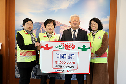 ¹«ÁÖ »ç¶ûÀÇ ¿¸Å ÀÓ¹ÌÈ ´ÜÀåÀÌ 6ÀÏ ÁöÁøÇÇÇØ·Î °íÅëÀ» °Þ°í Àִ Ƣ¸£Å°¿¹ ¡¤ ½Ã¸®¾Æ ±¹¹Îµé¿¡°Ô Àü´ÞÇØ ´Þ¶ó¸é¼ Çö±Ý 1¹é¸¸ ¿øÀ» ¹«ÁÖ±º¿¡ ±âŹÇß´Ù.