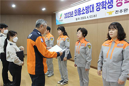 ÀüÁÖ¿Ï»ê¼Ò¹æ¼(¼Àå ±èÀå¼ö)´Â ÀüÁÖ¿Ï»êÀÇ¿ë¼Ò¹æ´ë¿øÀÌ Âü¼®ÇÑ °¡¿îµ¥ '2023³â ÀÇ¿ë¼Ò¹æ´ë ÀåÇлý ÀåÇÐÁõ¼ ¼ö¿©½Ä'À» 12ÀÏ °¡Á³´Ù.