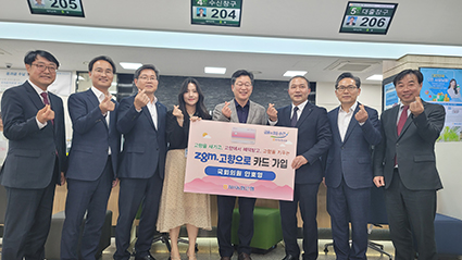 NH³óÇùÀºÇà ¹«ÁÖ±ºÁöºÎ(ÁöºÎÀå ±Ç¿ÀÁ¤)´Â Áö³ 14ÀÏ ¾ÈÈ£¿µ ±¹È¸ÀÇ¿ø°ú NH³óÇùÀºÇà Á¤ÀçÈ£ ºÎÇàÀå, ³óÇùÁß¾Óȸ ±è¿µÀÏ ÀüºÏº»ºÎÀå°ú ÇÔ²² 'zgm.°íÇâÀ¸·Î(Áö±Ý °íÇâÀ¸·Î)'Ä«µå °¡ÀÔÇà»ç¸¦ °³ÃÖÇß´Ù°í ¹àÇû´Ù.