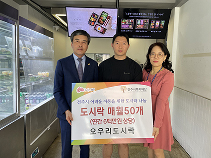ÃÖÁ¤¼® ¿À¿ì¸®µµ½Ã¶ô ´ëÇ¥´Â ¡°¿À¿ì¸®µµ½Ã¶ôÀº ÀüÁÖ ÇÑÁ¤½ÄÀ» ±â¹ÝÀ¸·Î ÇÑ ¾î¹Ý ½ºÅ¸ÀÏÀÇ ¼öÁ¦ µµ½Ã¶ô Àü¹®¾÷üÀÌ´Ù.¡±¸ç, ¡°¾ÆÀ̵éÀÌ µµ½Ã¶ôÀ» ¸ÔÀ¸¸ç Çàº¹ÇØ ÇÒ ¼ö ÀÖµµ·Ï ¿µ¾ç°¡ ÀÖ°í ¸ÀÀÖ´Â µµ½Ã¶ôÀ» Áö¿øÇϰڴÙ.¡±°í ¹àÇû´Ù.