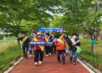 ¹ÎÁÖÆòÈÅëÀÏÀÚ¹®È¸ÀÇ Áø¾È±ºÇùÀÇȸ(ȸÀå ÃÖ°æÈ£)´Â 19ÀÏ ÀÚ¹®À§¿ø ¹× Áø¾È ¿ù¶û»ê¾Çȸ ȸ¿ø 70¿©¸í°ú ÇÔ²² ÆòÈÀÇ±æ °È±â Ä·ÆäÀÎÀ» ½Ç½ÃÇß´Ù°í ¹àÇû´Ù.