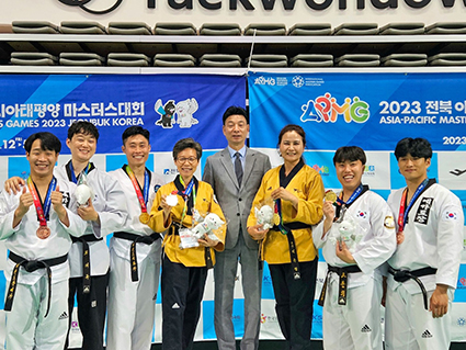 ÀüÁÖºñÀü´ëÇб³ Å±ǵµÃ¼À°Çаú ±³¼ö¡¤µ¿¹®µéÀÌ '2023 ÀüºÏ ¾Æ½Ã¾Æ¡¤ÅÂÆò¾ç ¸¶½ºÅͽº´ëȸ'¿¡¼ µÎ°¢À» ³ªÅ¸³Â´Ù.