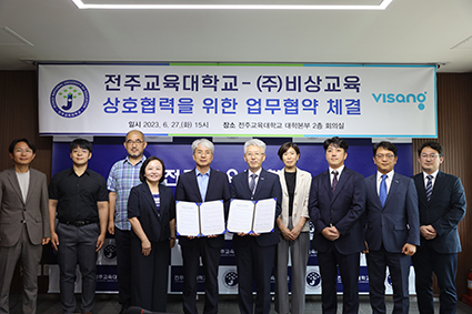 ÀüÁÖ±³À°´ëÇб³´Â 27ÀÏ º»ºÎ 2Ãþ ȸÀǽǿ¡¼ (ÁÖ)ºñ»ó±³À°°ú ±³À°¹®È Çâ»ó ¹× »êÇÐÇù·ÂÀ» À§ÇÑ ¾÷¹« Çù¾àÀ» ü°áÇß´Ù°í ¹àÇû´Ù.