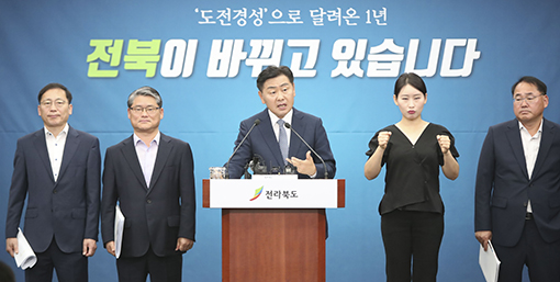 28ÀÏ ÀüºÏµµÃ» ºê¸®Çη뿡¼ ±è°ü¿µ µµÁö»ç(»çÁø °¡¿îµ¥)°¡ ÃëÀÓ 1Áֳ⠱âÀÚ °£´ãȸ¸¦ °®°í ÀÖ´Ù.